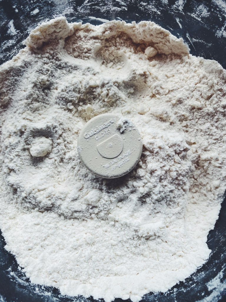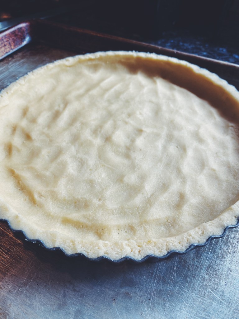 - Make the crust: Combine the flour, confectioners’ sugar and salt in the bowl of a food processor fitted with the steel blade. Pulse a few times to combine. Scatter the butter pieces on top, and pulse until the butter is the size of small peas. Add the egg yolk and vanilla extract, and pulse until incorporated. Pulse in the water, about 2 teaspoons at a time, until the dough starts to hold together. It will appear to be a bit crumbly, but should hold together easily when pressed.