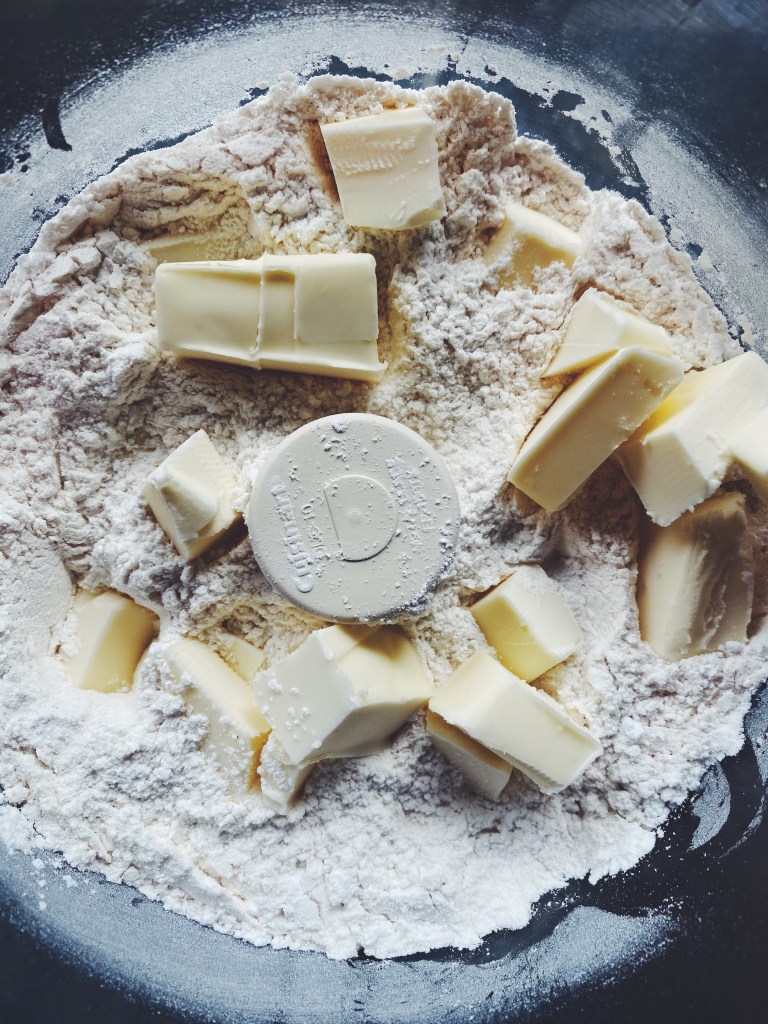 - 10 tablespoons/140 grams cold unsalted butter (1 1/4 sticks), cut into 1/2-inch pieces, plus more for greasing the pan