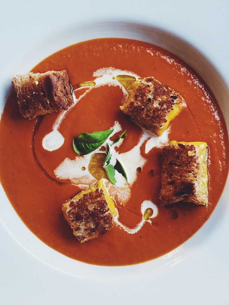 - Serve soup topped with a drizzle of heavy cream (optional) and top with croutons.